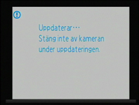 Kameran kan skadas om strömmen bryts eller om kamerakontrollerna används under uppdateringen. Stäng inte av kameran eller ta bort eller koppla ifrån strömkällan. Använd inte heller kamerans kontroller under uppdateringen. Om uppdateringen inte slutförs ordentligt och kameran inte går att använda, tar du med den till en Nikon-auktoriserad servicerepresentant.