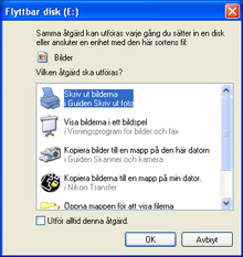 I Windows XP kan det hända att en dialogruta om en flyttbar disk visas. Klicka på Avbryt.
