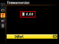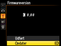 | 5 | Den nuværende firmwareversion vises. Markér Opdater og tryk på . |