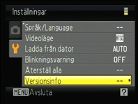 Kontrollera den interna programvarans version enligt anvisningarna i Steg 2, “Kontrollera aktuell version för kamerans firmware”. |