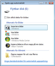 I Windows 7/Windows Vista kan det hända att dialogrutan Spela upp automatiskt visas. Klicka på . |