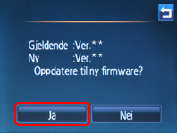 En dialogboks for oppdatering av firmware vil vises. Trykk Ja for å starte oppdateringen. |