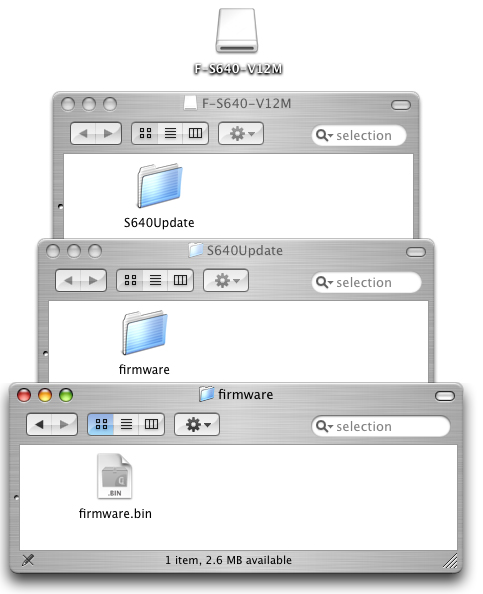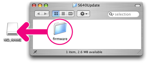 | 2 | Na pulpicie pojawi się wolumen bez tytułu. Skopiuj folder „firmware” z folderu „S640Update” do tego wolumenu bez tytułu. | |