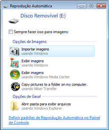 Em Windows 7/Windows Vista, poderá ser apresentado um diálogo Reprodução Automática. Clique em . |