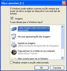 Em Windows XP, poderá ser apresentado um diálogo Disco amovível. Clique em Cancelar. |
