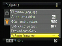Έλεγχος της τρέχουσας έκδοσης firmware της φωτογραφικής μηχανής |