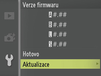 Pamatujte si, že v závislosti na modelu fotoaparátu se mohou dialogy a zprávy zobrazované během aktualizace lišit od zde uváděných. Před provedením aktualizace firmwaru příslušenství, jako je například objektiv, adaptér bajonetu nebo blesk, ověřte, že je toto příslušenství nasazené na fotoaparát.