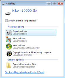 V operačním systému Windows 7/Windows Vista se může zobrazit dialogové okno Přehrát automaticky. Klepněte na tlačítko .