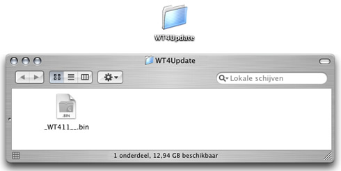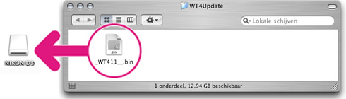 Op het bureaublad wordt een cameravolume weergegeven. Kopieer “_WT411__.bin” uit de map “WT4Update” naar deze verwisselbare schijf. |