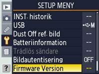Tryck på MENU-knappen och välj Firmware Version på Setup-menyn.