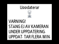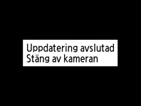 | Viktigt! Kameran kan skadas om strömmen bryts eller om kamerakontrollerna används under uppdateringen. Stäng inte av kameran eller ta bort eller koppla ifrån strömkällan. Använd inte heller kamerans kontroller under uppdateringen. Om uppdateringen inte slutförs ordentligt och kameran inte går att använda, tar du med den till en Nikon-auktoriserad servicerepresentant. |
