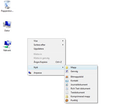 | 1 | Högerklicka på en tom yta på skrivbordet och välj Nytt > Mapp på den meny som visas. Ge mappen ett valfritt namn. | |||||||