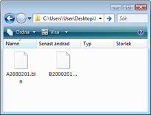 | Viktigt Du kan bara uppdatera en uppsättning firmware (A eller B) i taget. Använd olika minneskort för de olika firmware-uppsättningarna, eller uppdatera firmware A enligt instruktionerna nedan, formatera därefter minneskortet innan du uppdaterar firmware B på samma sätt. |