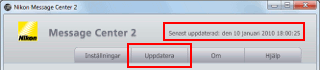 - Uppdateringarna för Nikon Message Center 2 kan visas som