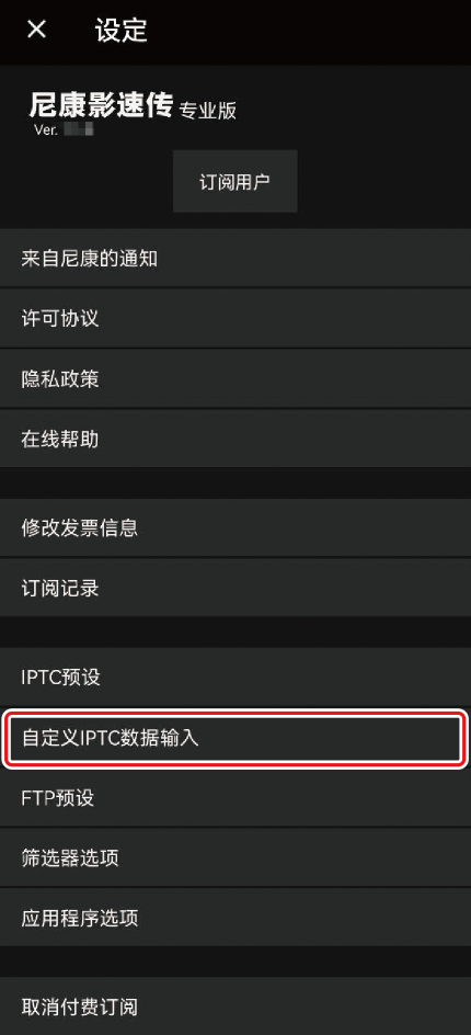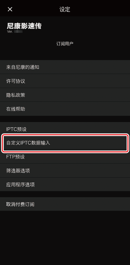 轻触设定显示页面中的[自定义IPTC数据输入]。