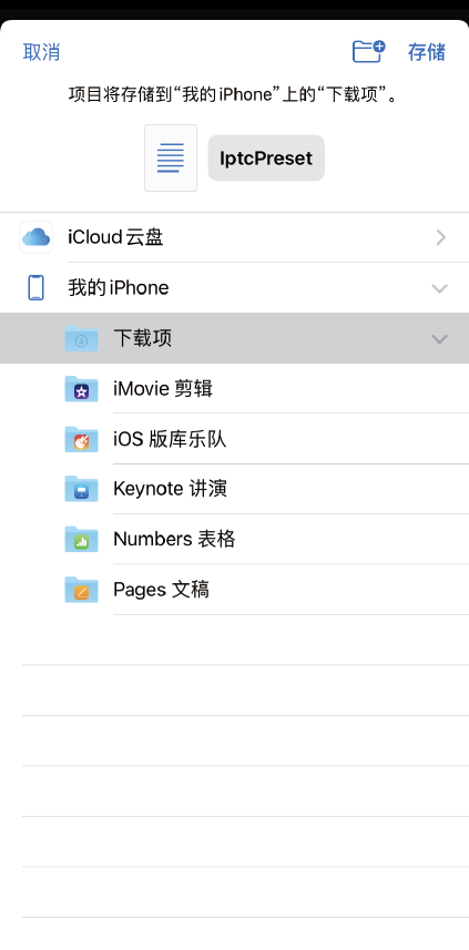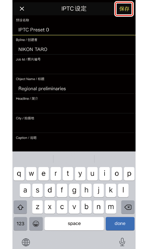 选择要导出的IPTC预设并轻触显示页面底部的[保存]。