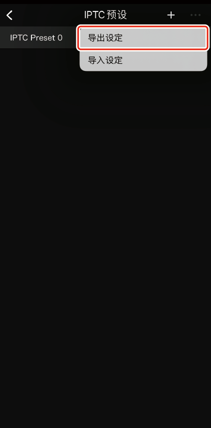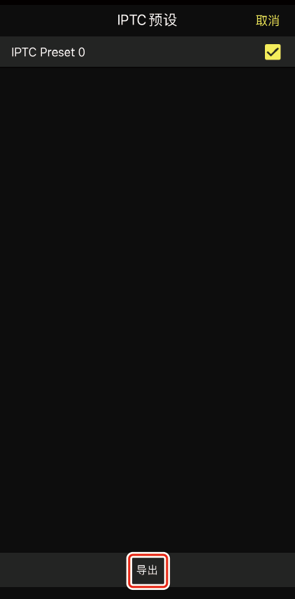 选择要导出的IPTC预设并轻触显示页面底部的[导出]。