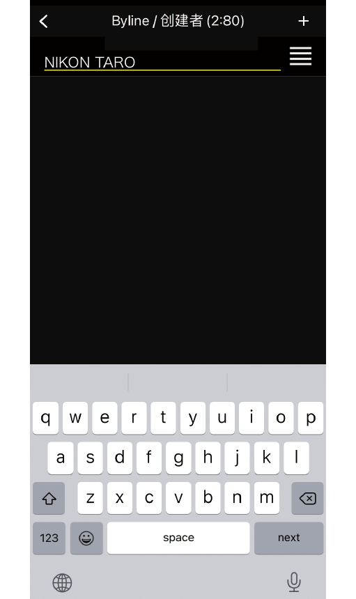 - 在IPTC设定显示中,所保存的术语在数据输入过程中作为自动完成选项显示在软件键盘上方。