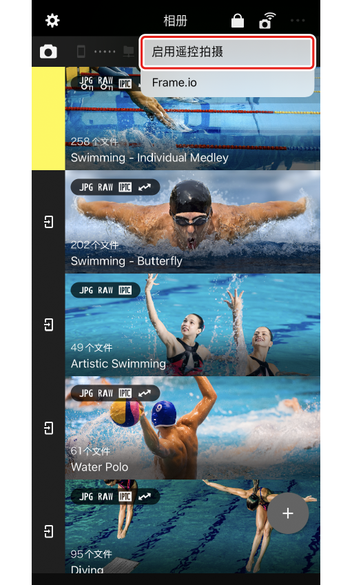 (菜单)按钮并轻触[启用遥控拍摄]可显示遥控操作标签,以便使用各种功能。