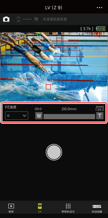 当遥控照相机上安装了电动变焦镜头时,可从尼康影速传操作电动变焦。