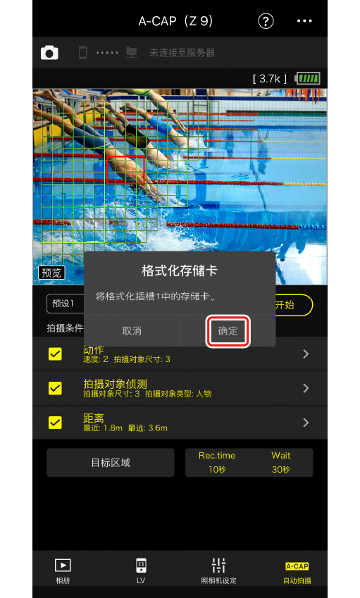 若[开始]按钮被禁用,请检查照相机是否可执行自动拍摄操作。