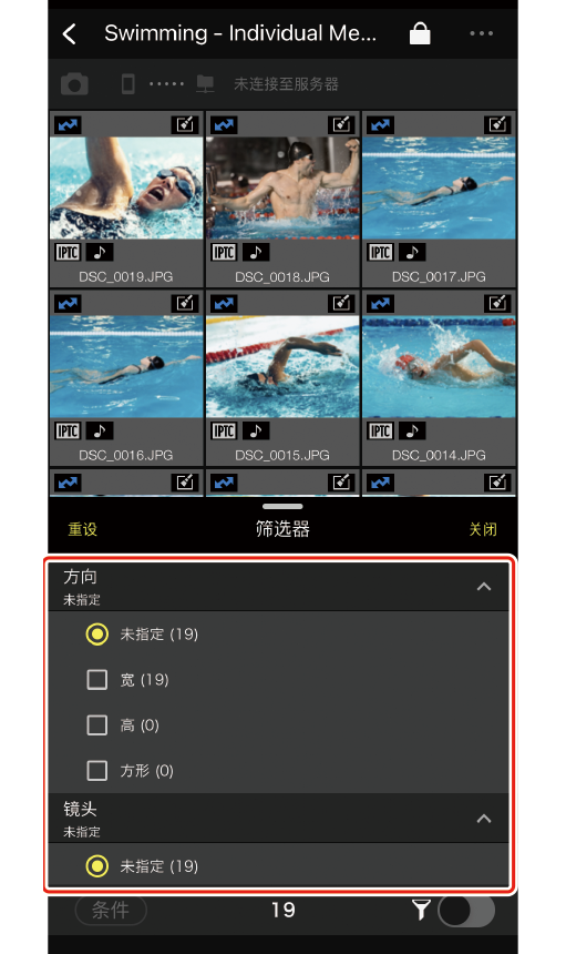 尼康影速传单独储存为各相册所选的筛选条件。复制相册不会复制其筛选条件。