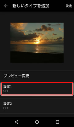 [決定]をタップすると[カスタム1]または[カスタム2]として登録されます。