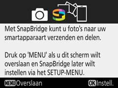 Druk op de OK-knop van de camera om het koppelen van de camera met SnapBridge te starten.