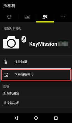 使用照相机标签中的下载所选照片选项可查看照片并选择照片下载至智能设备。