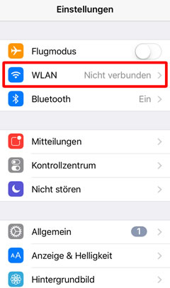 Tippen Sie auf »< Einstellungen«, um die iOS-Einstellungen anzuzeigen.