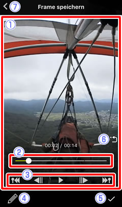 • Filmwiedergabeanzeige: Zeigen Sie den Film an, um einen Bildausschnitt zu wählen.