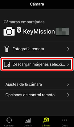 Use la opción Descargar imágenes seleccionadas en la ficha Cámara para visualizar las imágenes y seleccionar la descarga al dispositivo inteligente.