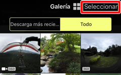 Toque Seleccionar para ver la pantalla de selección de imágenes. Toque las imágenes para seleccionarlas para su compartición; las imágenes seleccionadas aparecen indicadas mediante un icono