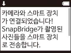 (설정) 메뉴에서 카메라 설정 > 네트워크 메뉴 > 스마트 장치로 연결을 선택하여 5단계에 표시된 대화 상자를 표시해서 페어링을 시작할 수 있습니다.
