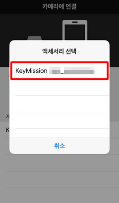 스마트 장치: 액세서리를 선택하라는 메시지가 표시되면 디스플레이 오른쪽 위의 Bluetooth 아이콘이 흰색에서 회색으로 바뀔 때까지 기다린 다음 카메라 이름을 누릅니다(카메라 이름이 표시되기까지 시간이 걸릴 수 있음).