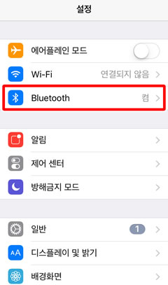iOS 설정 앱을 열고 Bluetooth를 누릅니다.