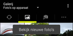Als nieuwe foto's van de camera worden ontvangen terwijl u de foto’s op het apparaat bekijkt, dan wordt een meldingspictogram weergegeven. Tik op de melding om de miniaturenlijst bij te werken.