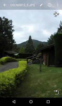 -pictogram. Wanneer sferische 360° in Galerij Meest recente download of Foto’s op apparaat in schermvullende weergave wordt getoond, dan kunt u op de weergave tikken om de content te bekijken en vegen om een zichtpunt te kiezen. Tik op