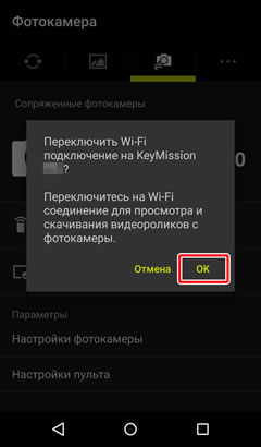 Мы рекомендуем изменить пароль по умолчанию для защиты конфиденциальности. Чтобы просмотреть или изменить пароль фотокамеры, выберите Настройки фотокамеры > Меню парам. сети > Wi-Fi > Тип подключения Wi-Fi во вкладке Фотокамера в SnapBridge 360/170. В KeyMission 170 доступ к паролю также можно получить, выбрав Настройки камеры > Меню парам. сети > Wi-Fi > Настройки сети > Пароль.