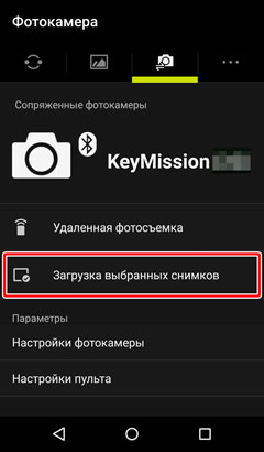Используйте опцию Загрузка выбранных снимков во вкладке Фотокамера для просмотра снимков и выберите для загрузки на смарт-устройство.