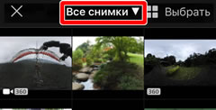 , но имейте в виду, что поток видеоролика по беспроводному подключению станет причиной снижения качества; для просмотра сферического содержания на 360° коснитесь дисплея. Для выхода из режима полнокадрового просмотра коснитесь