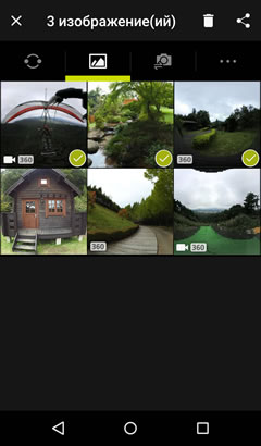 Нажмите Выбрать для просмотра дисплея выбора изображений. Коснитесь снимков для их выбора для удаления; выбранные снимки обозначаются иконкой