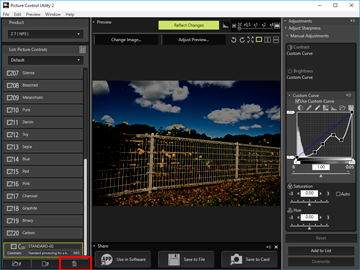 at the bottom of the [List: Picture Controls] palette.