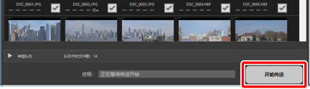 单击 [开始传送],开始下载存储卡中的照片。