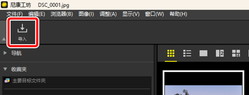 若正在运行尼康工坊,您可通过单击 [导入] 启动Nikon Transfer 2。