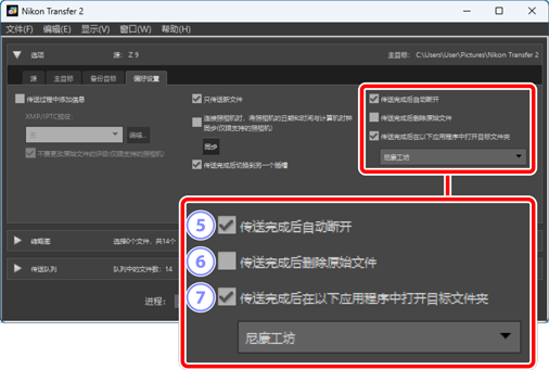 - 选择该选项会在下载完成时自动删除照相机或存储卡上的文件。本次下载未包含的文件或照相机中标记为受保护的文件不会被删除。