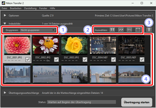- Bildfolgen lassen sich mit Nikon Transfer 2 nicht zerteilen.