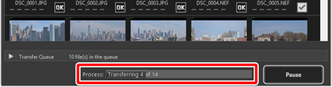 Current download status is shown in the [Process] bar as the number of pictures downloaded versus the total number of files in the queue. To pause download, click [Pause].