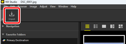 If NX Studio is running, you can launch Nikon Transfer 2 by clicking [Import].