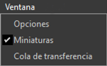 [Opciones]/[Miniaturas]/[Cola de transferencia]